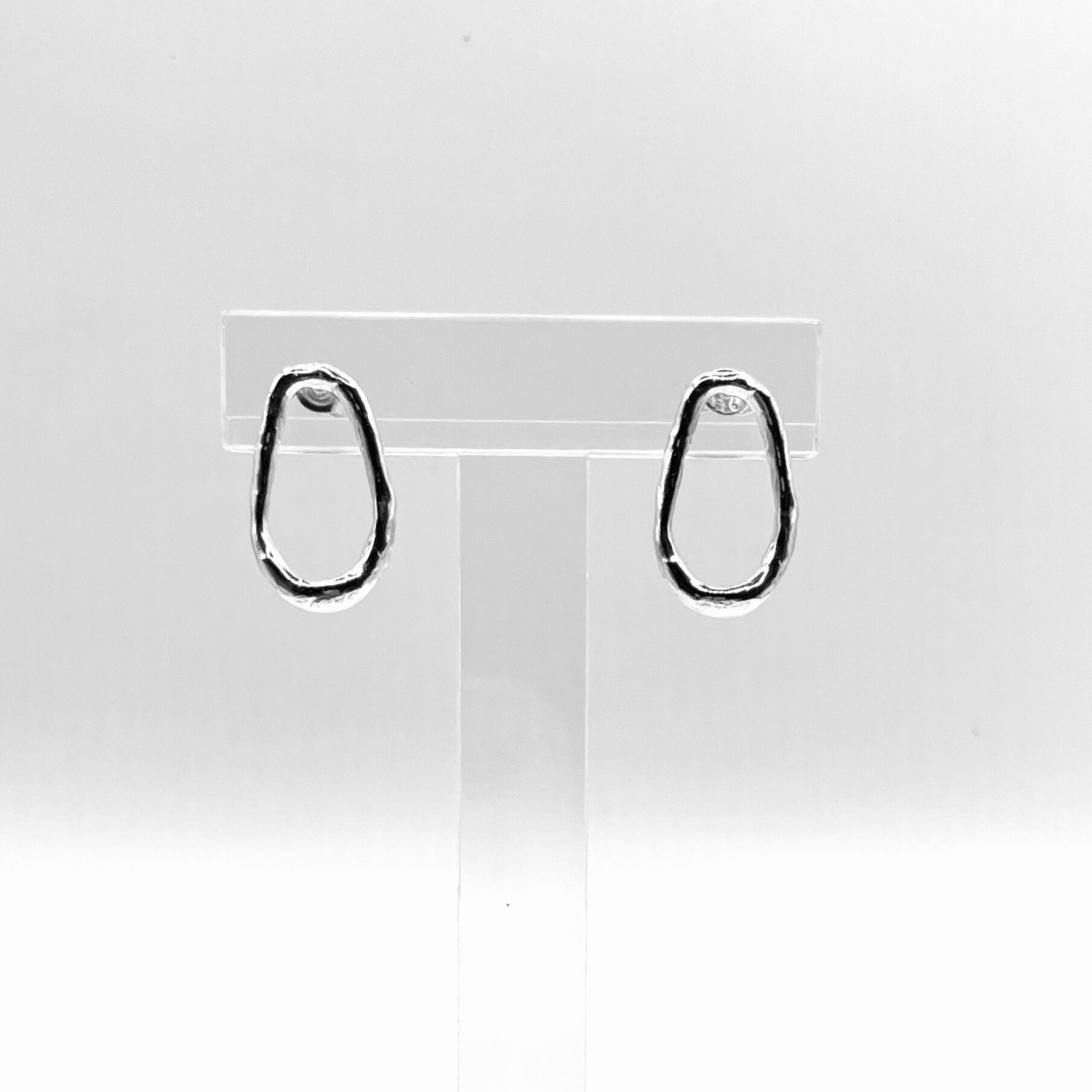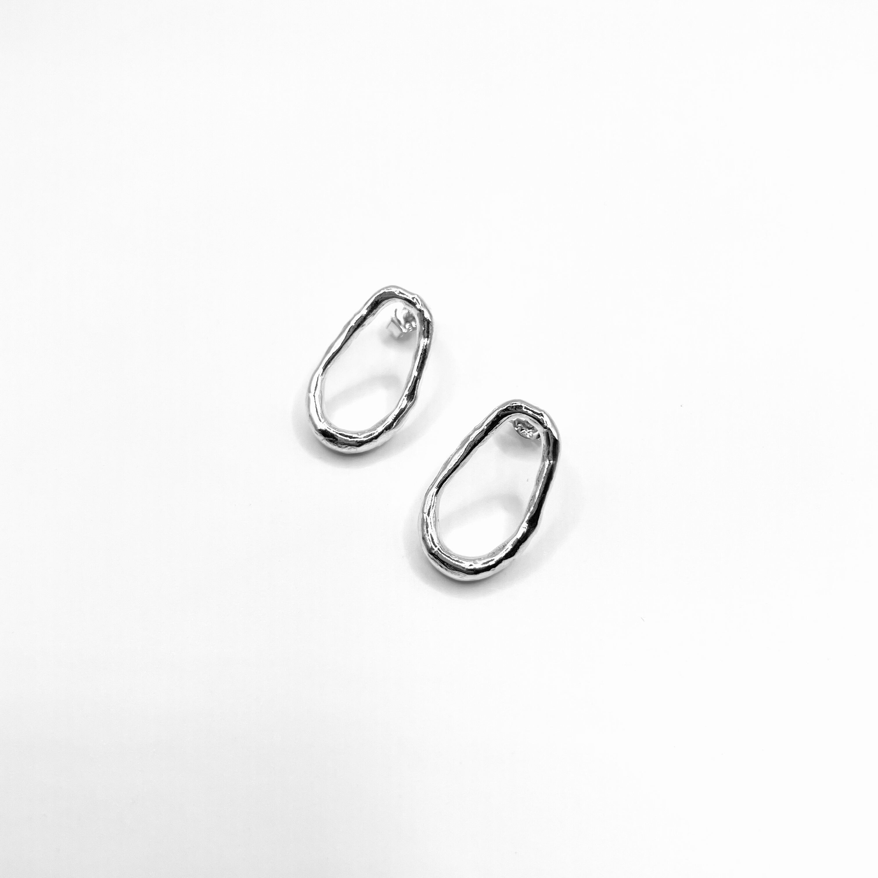 雫にのように下に少しボリュームがあり、滑らかというより少し凹凸のあるデザインのピアス。